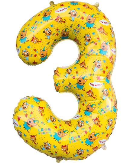 Главная страница » Магазин » Шарики из фольги » Цифры » Шар Цифра Три Кота 86 см