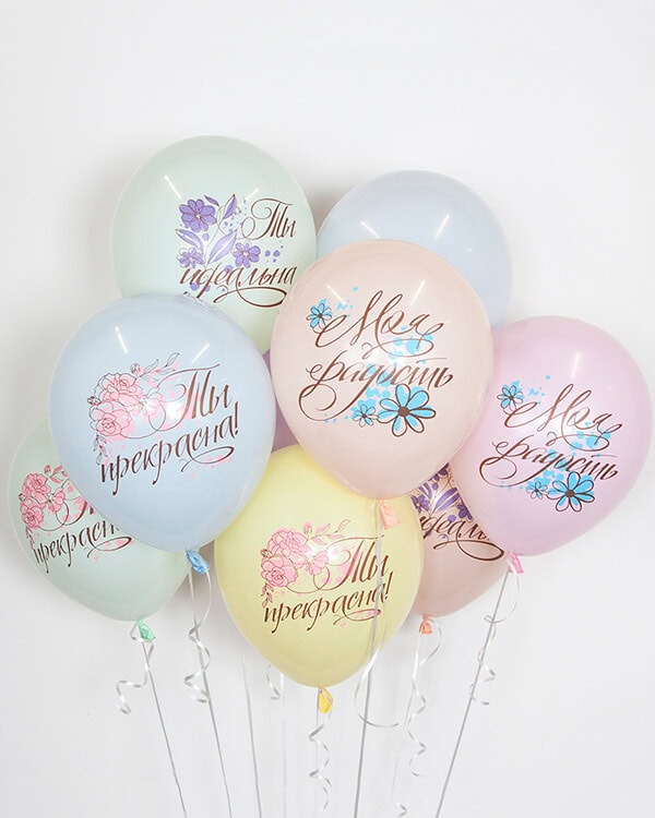 Шары с шелкографической многоцветной печатью и оригинальными дизайнами станут идеальным украшением праздничного торжества и поднимут настроение в любое время года.